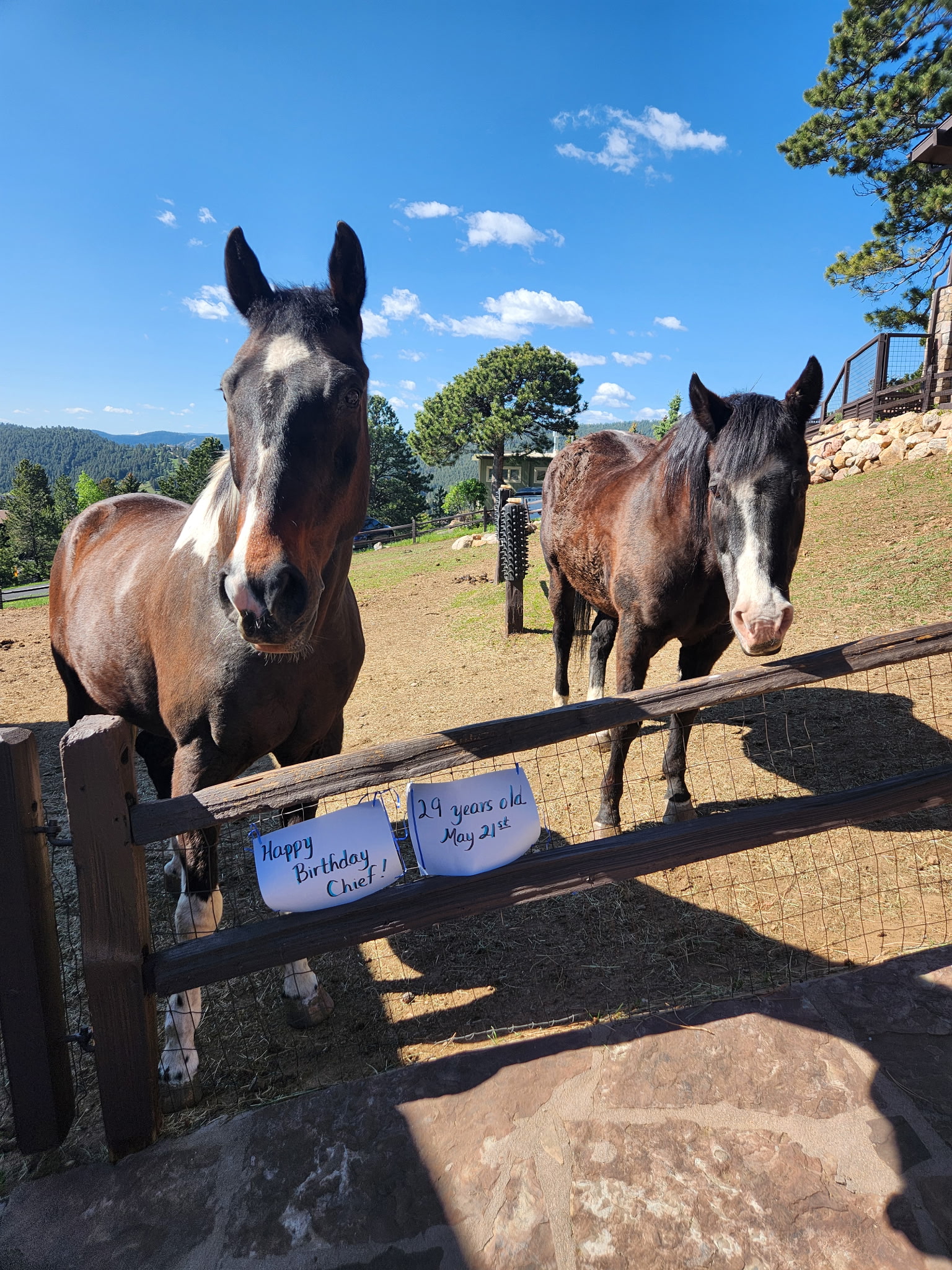 We are so lucky to have found Chief at HPL! He is a wonderful addition to our family and friend to our mare Princess LeiLei. He is a happy horse with a fun personality. Neighbors stop by daily to say hi to Chief and LeiLei… they are very popular! Chief has found his forever home and is very much loved!